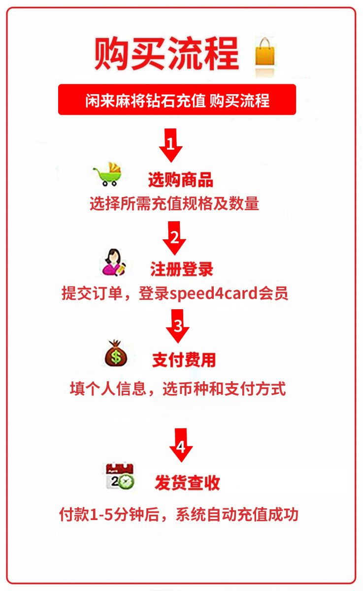 在海外想购买闲来麻将钻石充值的朋友,在Speed4card充值中心,只需要简单四步就可以成功购买闲来麻将钻石充值,直接点击图片链接可购买: