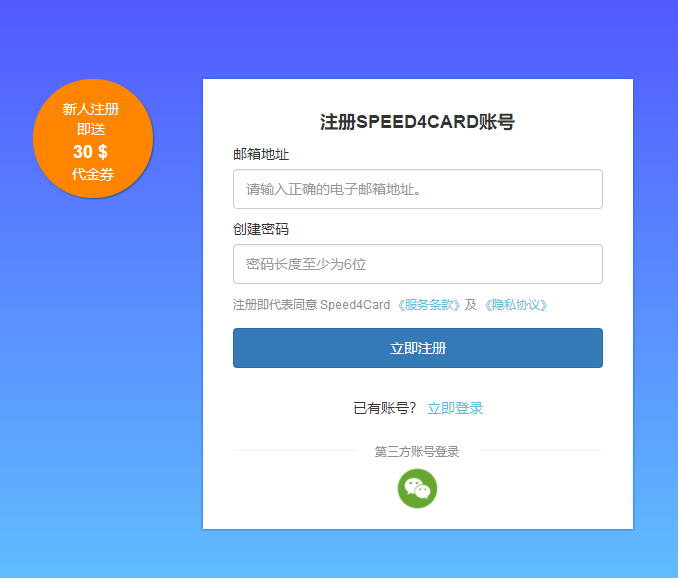 首先,进入Speed4Card官方网站(提醒一下:没有注册的小伙伴可以选择免费注册,因为新人有30美金的注册代金券礼包可以获得);